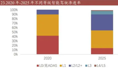 自动驾驶技术逐步成熟,催生高频高速连接器需求。根据华经产业研究院预测, 预计 2025 年全球 L1+L2 智能驾驶的渗透率将达到 76%,其中 L2 渗透率将达到 36%。汽车智能化及自动驾驶的推广,有望大规模增加车内信息传输的数量及频 …